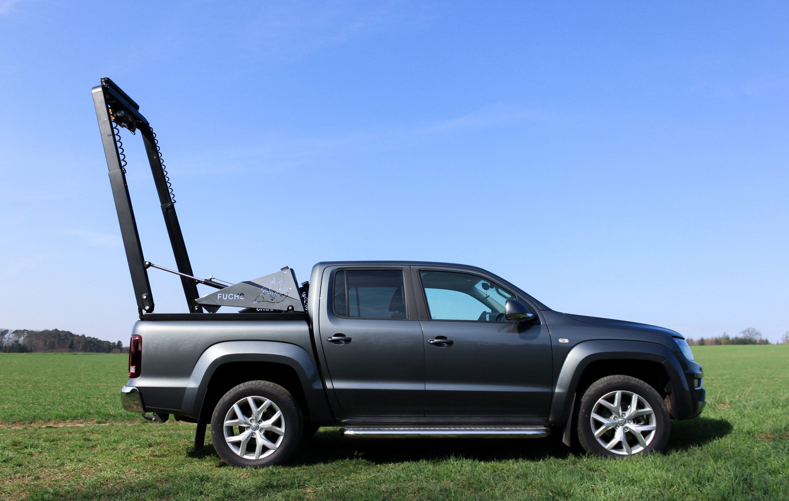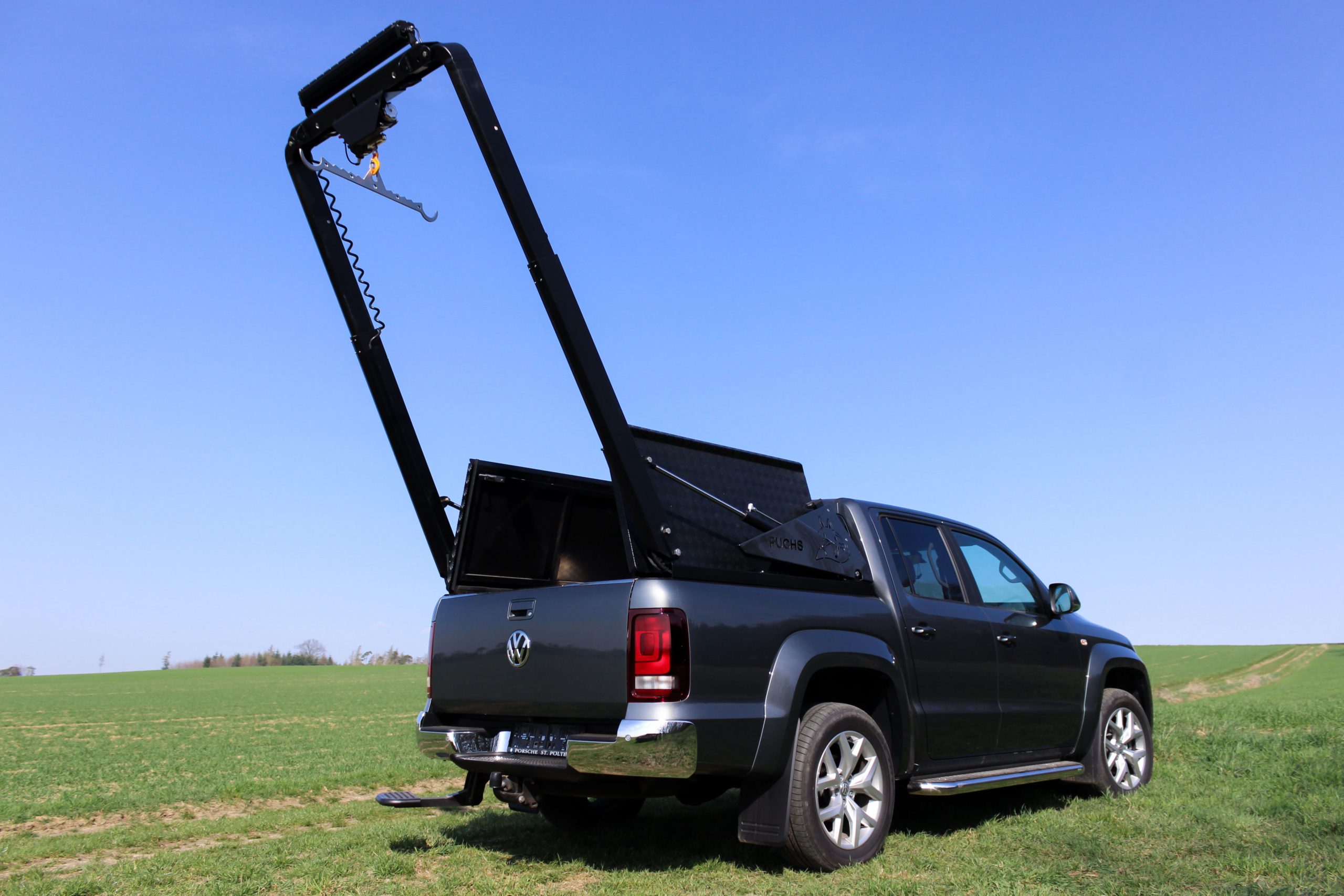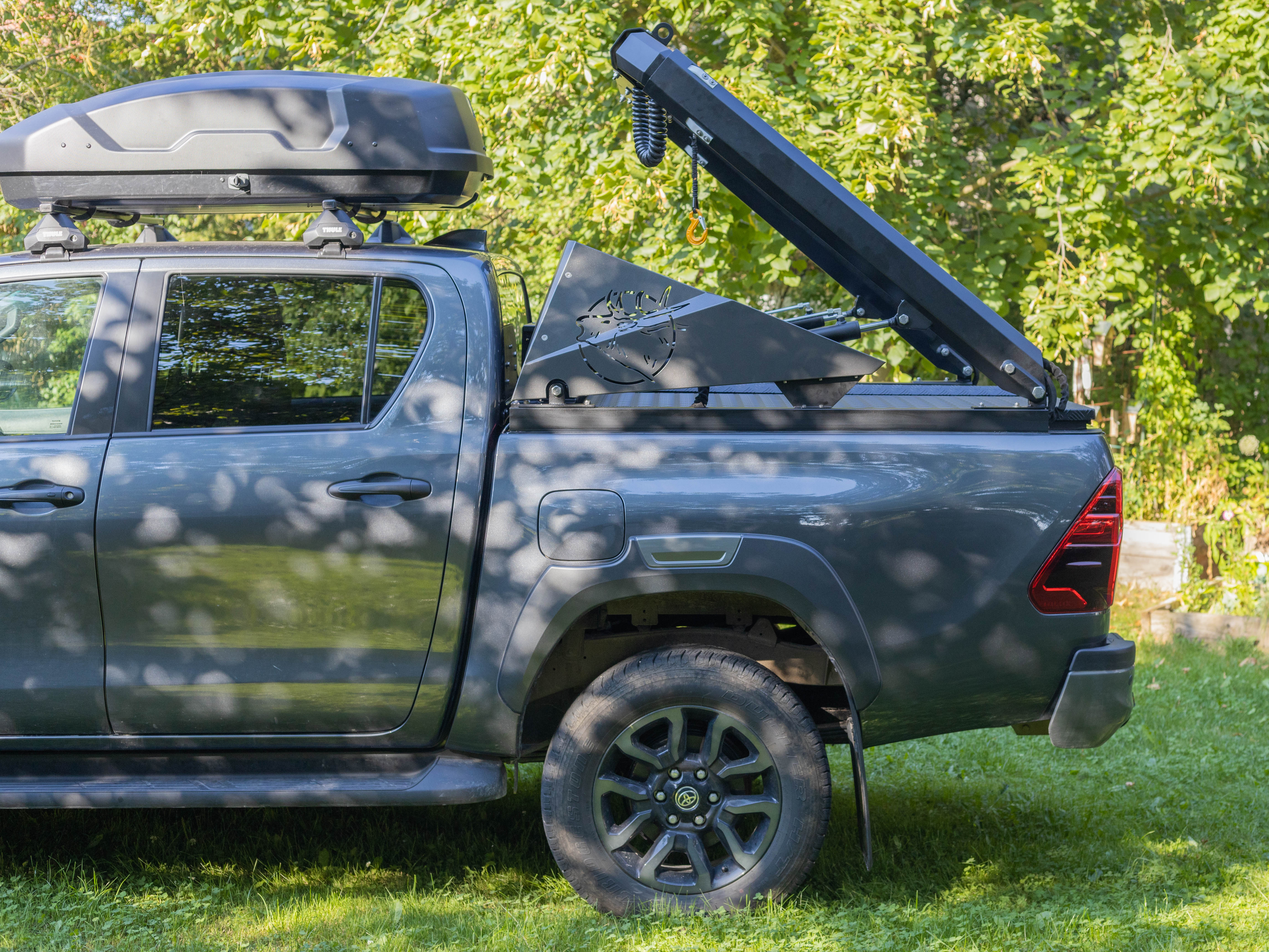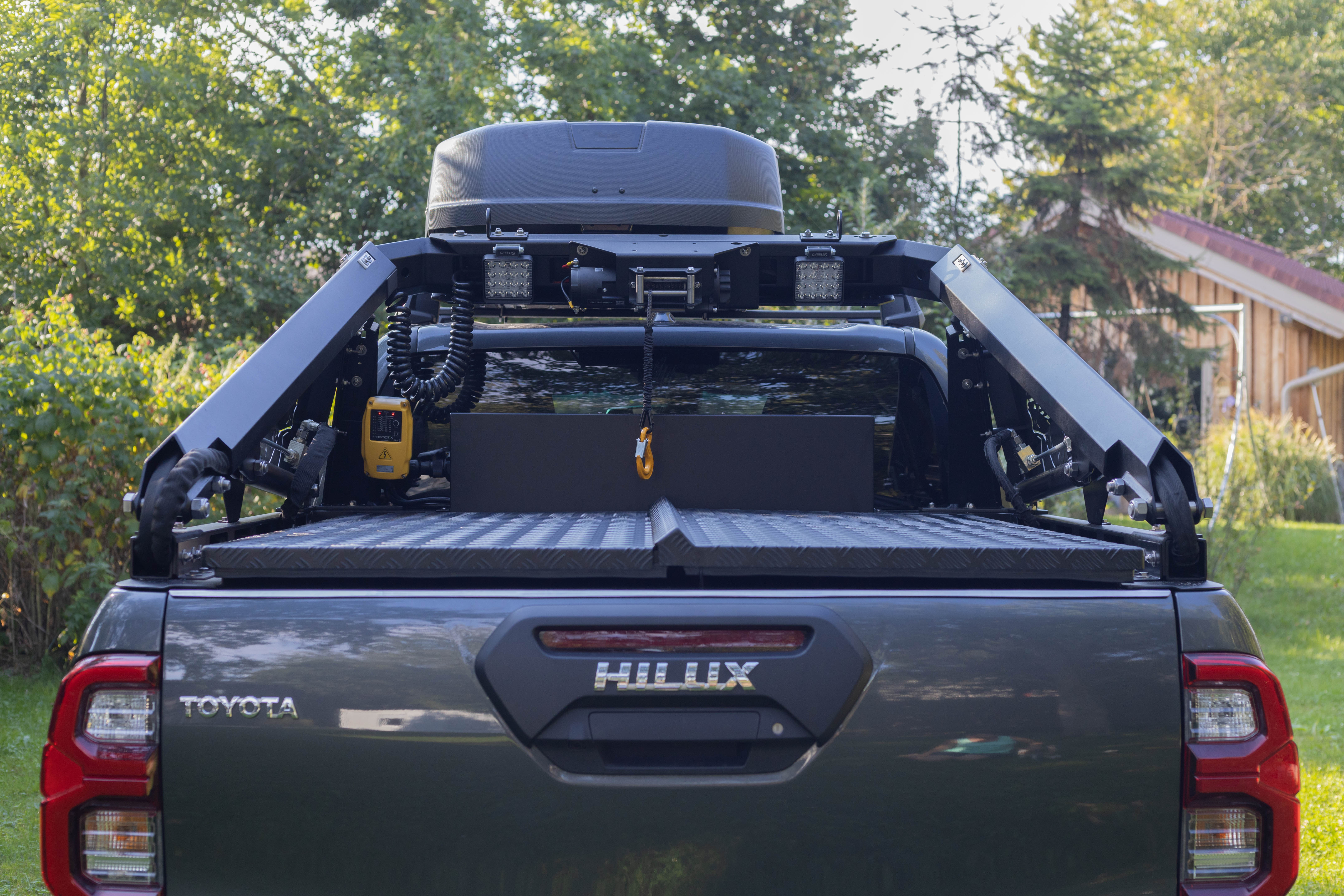 Der Pickup-Kran wurde von uns entwickelt und wird individuell auf Ihr Fahrzeug gefertigt. Selbst die speziell angepasste Funkfernbedienung stammt von einem regionalen Unternehmen. Wir setzen auf höchste Qualität und verarbeiten ausschließlich die besten Materialien. Auch Sonderwünsche setzen wir flexibel um.